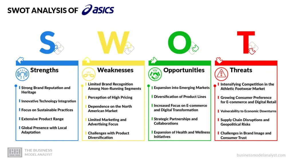 The ASICS SWOT Analysis reveals the dynamics of a company that has established itself as a global athletic footwear and apparel market leader. Originating in Japan in 1949, ASICS has seamlessly blended performance with style, making its products popular among athletes and fitness enthusiasts. The brand’s commitment to innovation and quality has earned it a steadfast following and significant market share in various athletic segments.